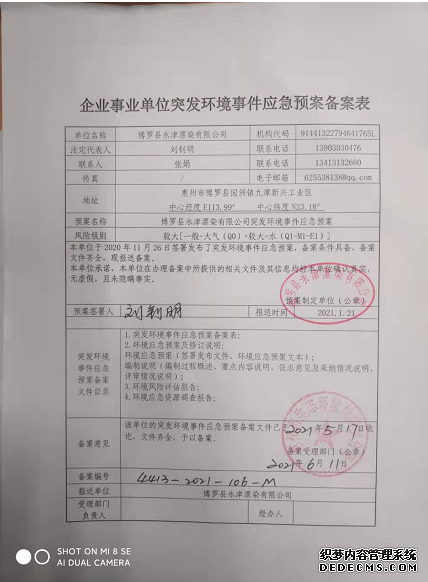 | 應急預案備案函 | 突發(fā)環(huán)境應急預案備案登記表 | 博羅縣環(huán)境保護局 | 2021-6-11 | |